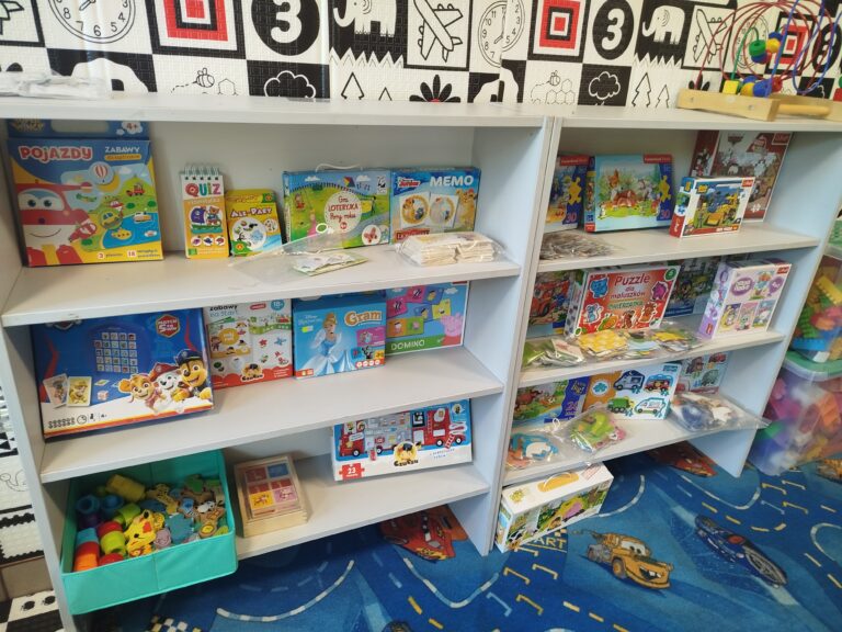 Na piętrze, nad DOMem jest przestrzeń Coworkingowa dla Rodziców dzieci, aby spokojnie mogli pracować zdalnie w czasie, gdy ich dziecko się rozwija.